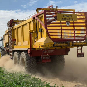 Une fois les betteraves ramassées et nettoyées, elles sont évacuées dans la caisse à l’aide d’un tapis de chargement d’une largeur 1000mm équipé de barreaux de 14mm fixé par rivets de 8mm. Une vis à spires de Ø500mm, pilotable hydrauliquement depuis la cabine de votre tracteur à l’aide de notre boitier Bus-Can, vous permettra de charger et de répartir vos betteraves dans la caisse aussi bien à l’avant que l’arrière de celle-ci.
