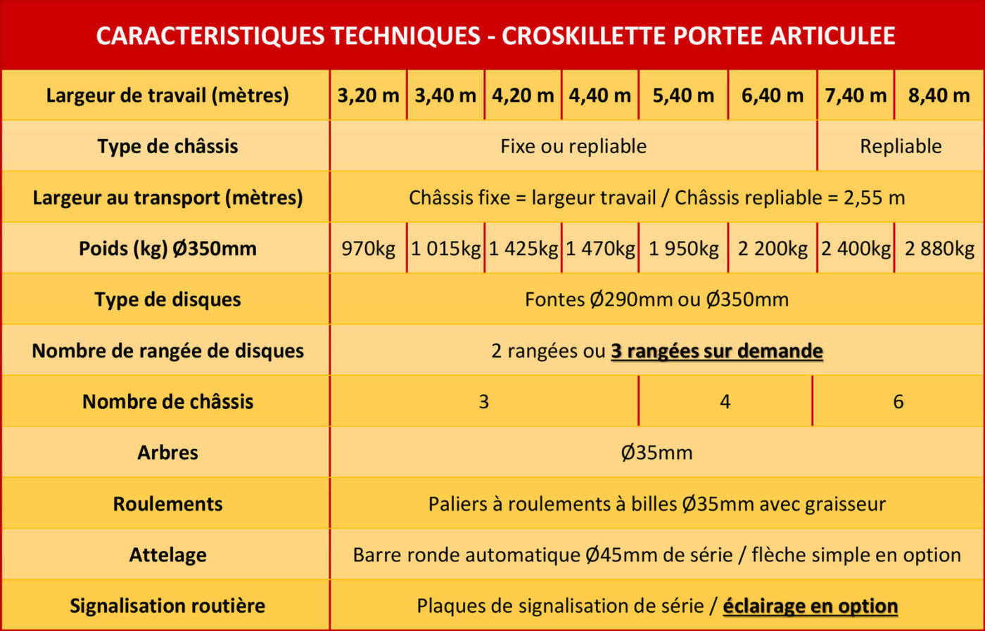 Nos châssis articulés permettent aux disques de croskillettes de suivre et de s’adapter au sol selon le travail de l’outil qui la précède et ainsi assurer un rappui uniforme sur toute la largeur de travail.